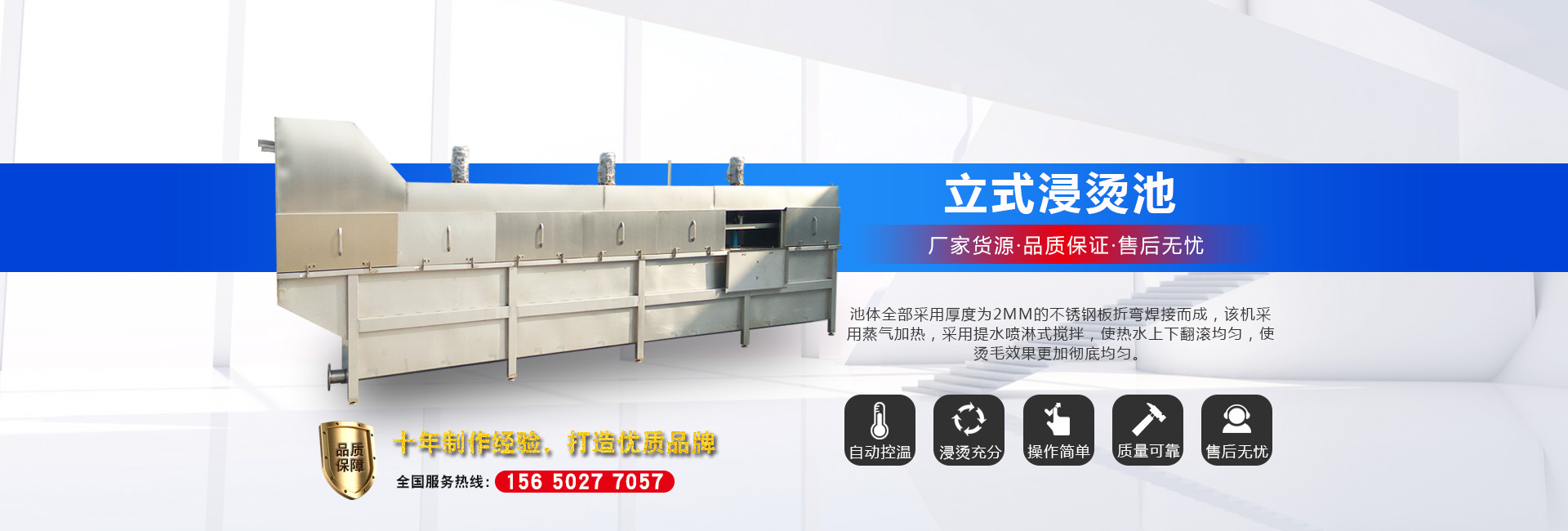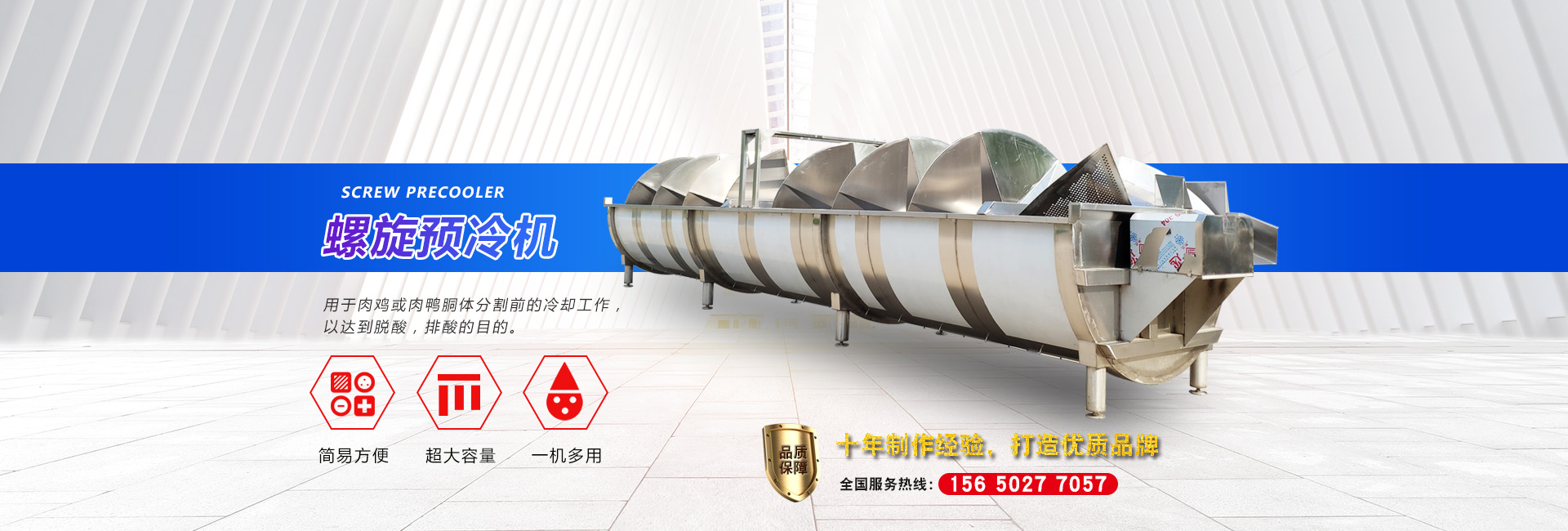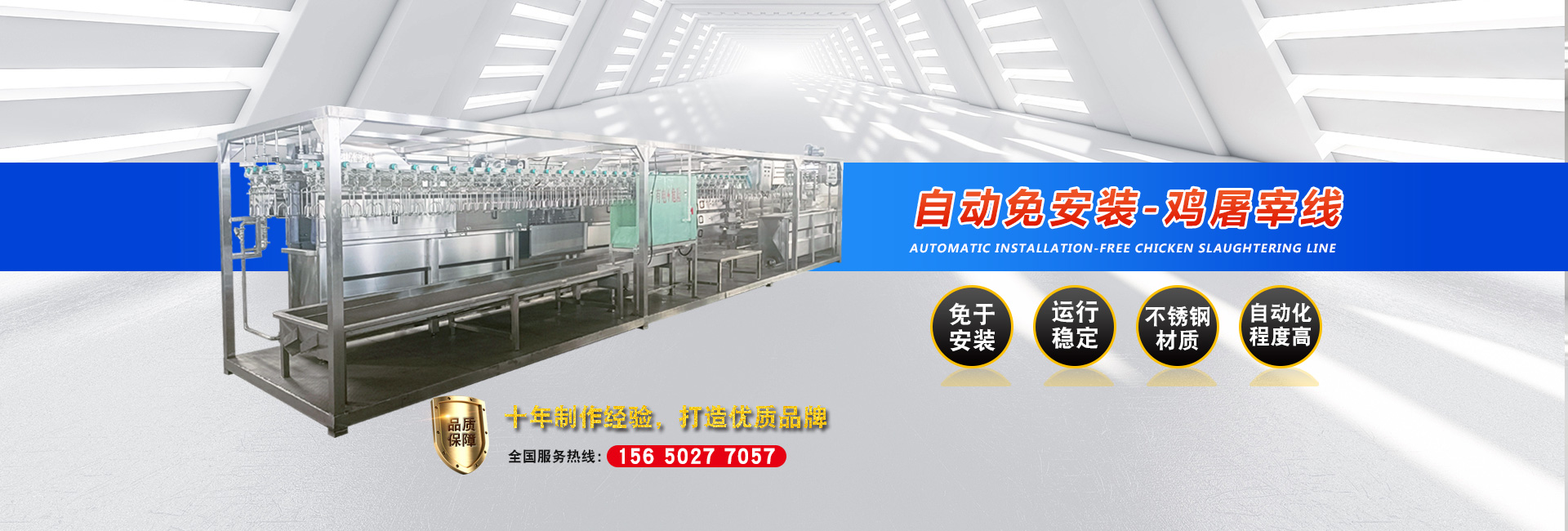 公司主要設(shè)備有:A字型立式脫毛機(jī)、臥式脫毛機(jī)、強(qiáng)力噴淋機(jī)、松毛機(jī)、浸燙池、螺旋預(yù)冷機(jī)、禽籠清洗機(jī)、電暈機(jī)、兔割前爪/后爪機(jī)、剝胗機(jī)、自動洗鉤機(jī)、螺旋燙爪機(jī)、雞爪脫皮機(jī)、分割輸送帶等屠宰用設(shè)備。